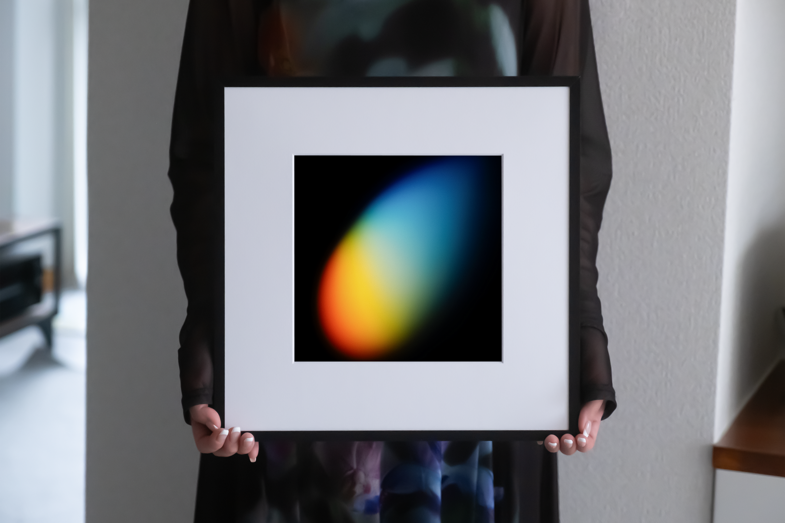 作品は額装し、専用のパッケージに丁寧に包んだ上で、さらに外箱に梱包してお送りします。パッケージには作者のサイン入りで日付の証明書を同梱し、薄葉紙で優しく包んでいます。