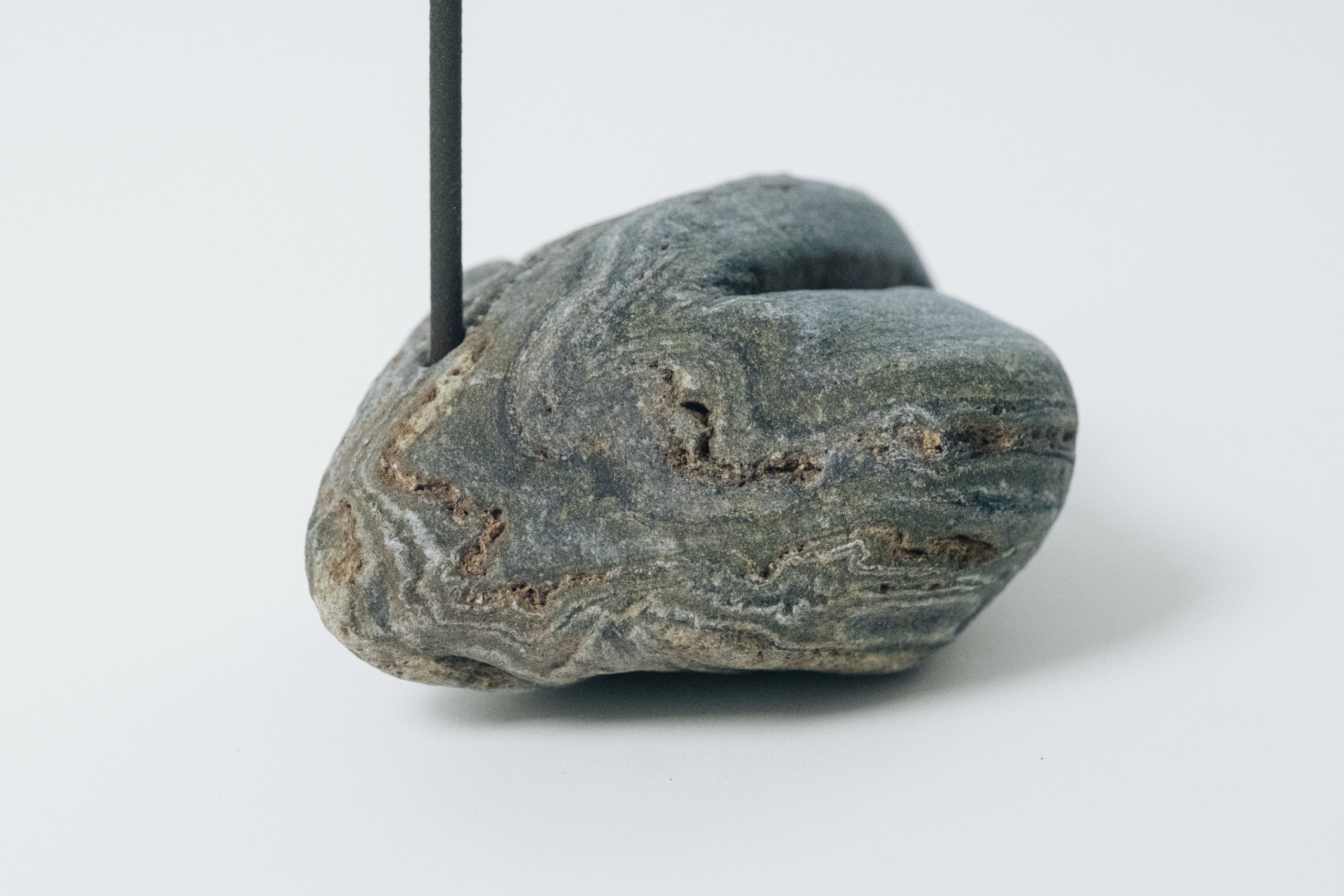 数万年、数億年の時間を抱えた自然石のお香立て(インセンススタンド)。同じ石は存在せず、すべてが唯一無二の一点もの。全て、ひとつひとつ丁寧に手作業で穴をあけています。穴の深さや位置、角度は、その石に最もふさわしい形を選び取っています。