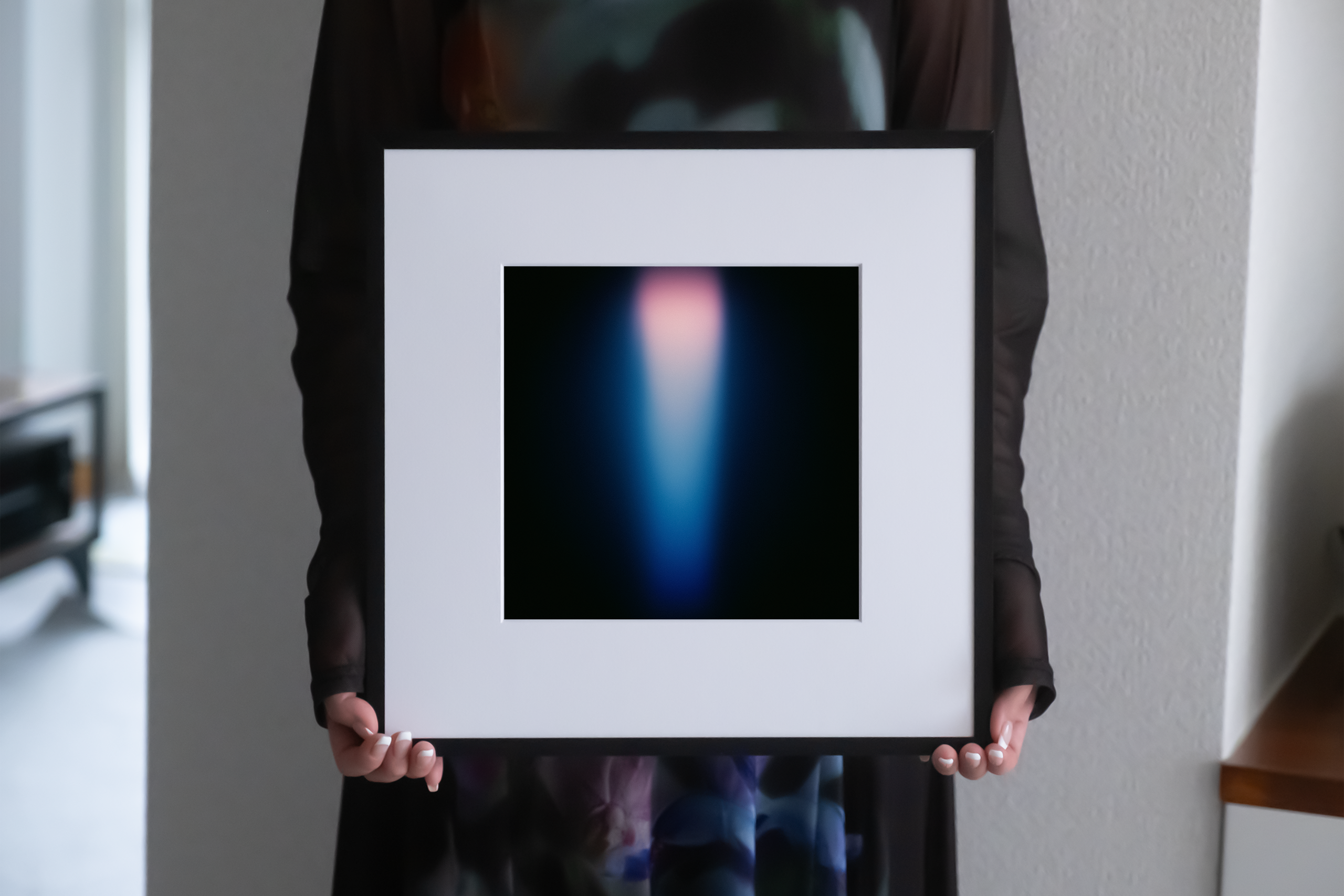 作品は額装し、専用のパッケージに丁寧に包んだ上で、さらに外箱に梱包してお送りします。パッケージには作者のサイン入りで日付の証明書を同梱し、薄葉紙で優しく包んでいます。