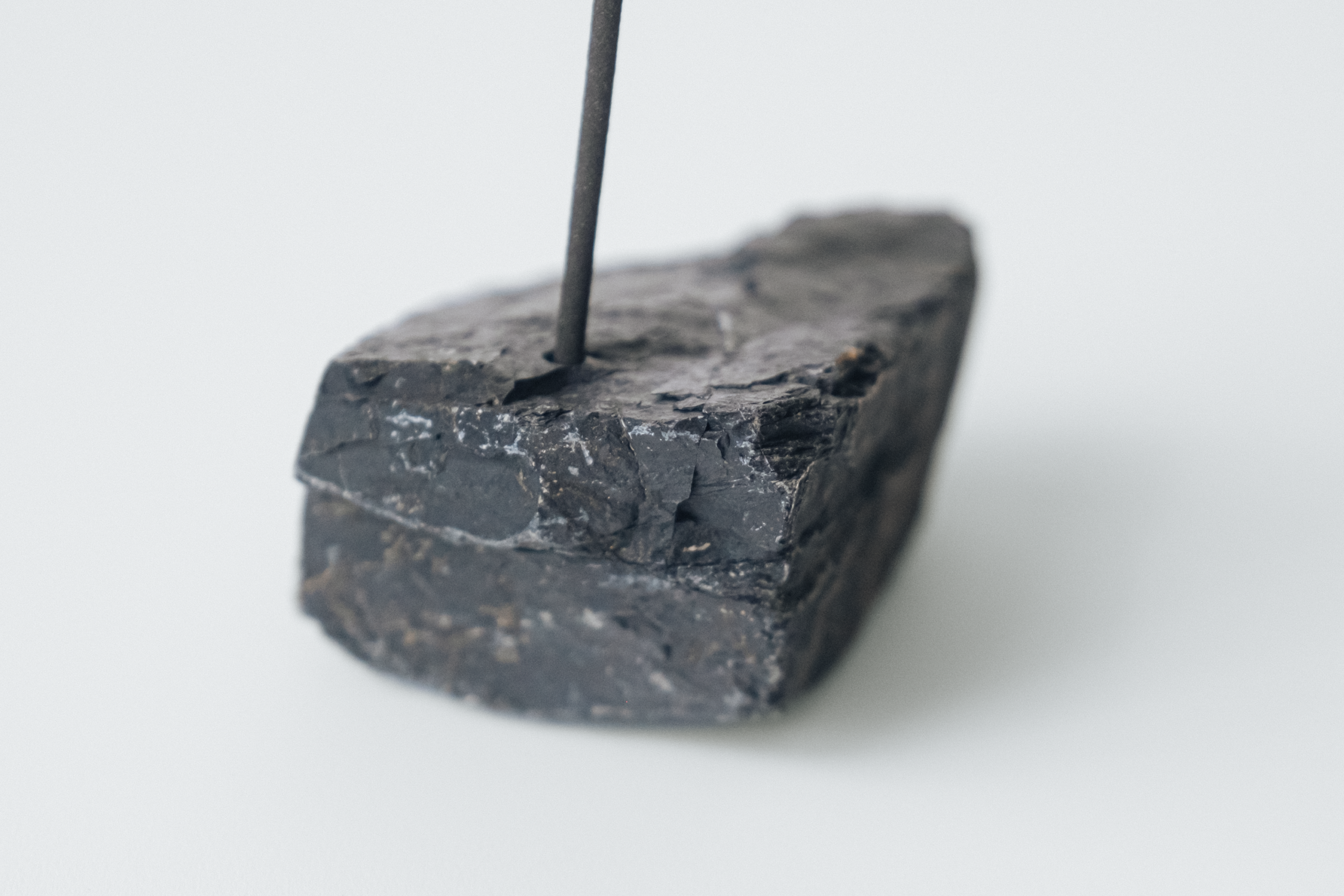<<石について>> ブラックロックの石のお香立て。ブラックロックは、数千万年前に地層に積もった泥や火山灰が、地殻の力によって強く圧縮されて生まれた石です。深い黒の中には自然に刻まれた凹凸が残り、ものによっては鉄分が長い時間をかけて酸化し、サビ色の模様が浮かび上がることもあります。その表情は積み重ねた年月が描き出した自然の模様です。
