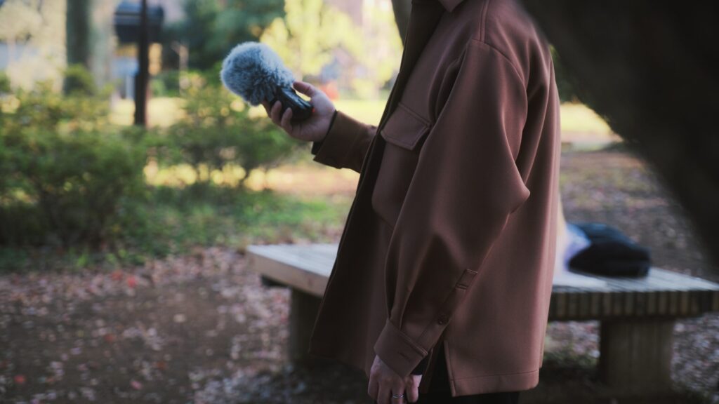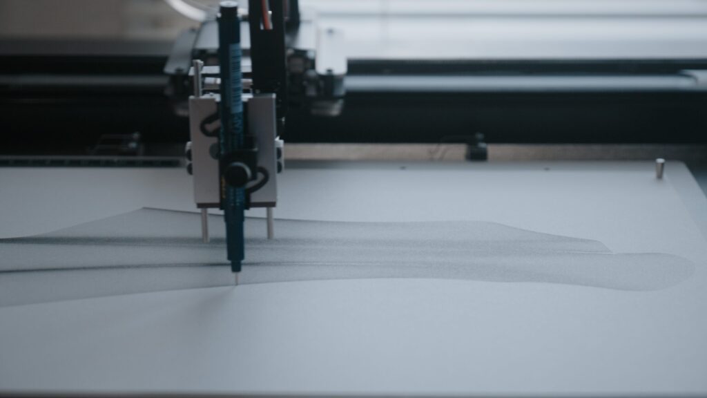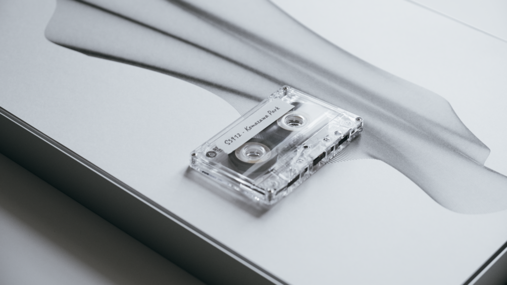 風を感じた景色の音をフィールドレコーディングで収録し、その記憶をもとに引いた線を、当時の音を聴かせながらペンプロッターに再描画してもらう。描画中は常に対話を重ねながら、お互いが感じたものを照応させて描いていく。